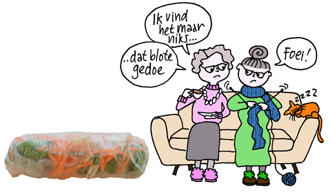 Bij ons thuis heten ze ‘blote loempiaatjes’, maar als ik het goed begrijp is de officiële term ‘summer rolls’, tegen ‘spring rolls’ voor de gebakken variant. Nu is het geen van twee, want winter, maar dat mag de pret niet drukken, mijn nijvere leerlingen rollen naar hartelust, en eten ze nog op ook.