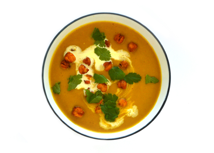 Nu wil het toeval dat ik ineens met een overschot zat aan kikkererwten, puur omdat ik het vocht nodig had om plantaardige chocolademousse mee te maken, zoals hier gisteren viel te lezen. Kikkererwten zijn alvast een stuk minder winters dan bruine bonen. En soep is elk seizoen lekker, plus een dankbaar vehikel voor alles wat er verder nog rond slingert. Om te beginnen winterpeen, want daar moeten we nu toch echt vanaf. Heeft u ook zin in koelkastschoonmaak? Dan zeg ik: alles in de soep. En als ik nu toch stichtelijk bezig ben, mag ik bij wijze van repeterende grammofoonplaat nogmaals mijn diepvriesrestjesgroentebouillon (recept nog online) aanbevelen? Echt veel lekkerder dan een blokje en het geeft zowel een opgeruimd gemoed als lege vriezer.