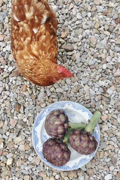 We hebben ze Marie-Antoinette, Joséphine en Claudette gedoopt, al reageren ze vooral op ‘chickie chickie chickie’. Er is werkelijk niks leukers dan een kip die blij aan komt rennen zodra ze je ziet. Ik weet heus wel dat ze meer geïnteresseerd zijn in mijn lekkere hapjes dan in mij als persoon, maar dat mag de pret niet drukken. Broodkruim, zaadjes en vogelvoer vinden ze heerlijk, maar ook kaaskorstjes – nee, niet die van plastic uiteraard.
