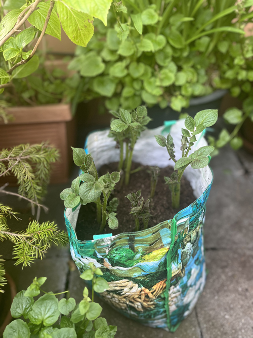 Maar dat is natuurlijk onzin, voegt hij er meteen aan toe, want aardappels zijn juist zo makkelijk, je hoeft er niets aan te doen! Stop een ouwe pieper vol met van die enge uitlopers in de grond en een paar maanden later heb je handenvol nieuwe oogst. (Kijk maar, ik kweek ze zelf op mijn Amsterdamse balkon in een oude boodschappentas!)