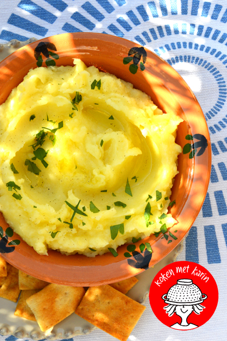 Skordalia is een gerecht uit Griekenland, een ultraromige soort dip van aardappelpuree, vol knoflook en olijfolie. Verslavend lekker, je blijft ervan dippen. Weer eens wat anders bij de borrel dan hummus. En nog heel simpel om te maken ook. Een recept uit de net verschenen Aardappelbijbel.