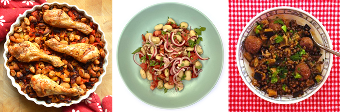 Hierboven had ik vooral aandacht voor vegarecepten, want peulvruchten zijn immers een uitstekende vleesvervanger. Maar ze combineren ook heel lekker mét vlees. Wie daarvoor nog wat inspiratie zoekt, vindt die hier.