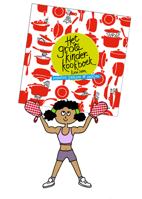 Het gaat om een combi-aanbieding, dat betekent dat je bij aanschaf van een persoonlijk gesigneerd exemplaar van mijn dubbeldikke Grote Kinderkookboek (inmiddels 7e druk!) voor slechts 2,50 euro extra dit stoere kinderkookschort erbij opgestuurd krijgt. Vraag niet hoe het kan maar profiteer d’r van, want zo lang de voorraad strekt en op is in dit geval écht op.