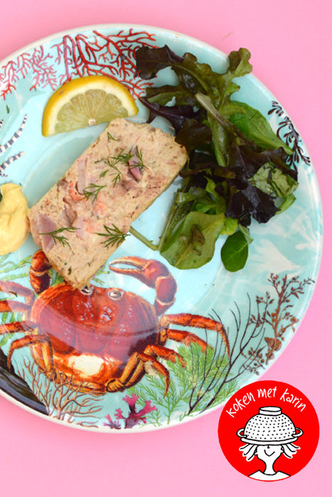 Na de kerst vertrekt ze écht, nadat ze maandenlang bezig was met stukje bij beetje verhuizen. En met het organiseren van allerlei afscheidsfestiviteiten, zoals een Ladies Lunch met al haar Engelse vriendinnen, waar ik ook bij mocht zijn. Ze had een enorme schaal lasagne gebakken, plus een appeltaart, en als voorafje een even heerlijke als makkelijke visterrine. Natuurlijk vroeg ik meteen het recept, om hem in Amsterdam na te maken. Geschikt voor veel personen, en werkelijk oersimpel om helemaal vooraf te bereiden, dus perfect voor het kerstmenu.